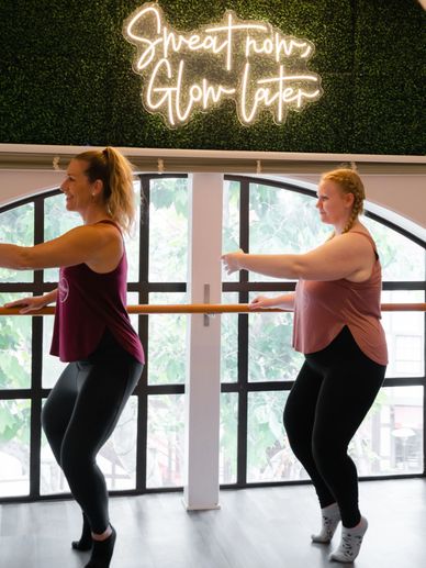 Barre combines the best of Pilates, yoga, and ballet barre training. It practices isometric strengthening to keep us working "in the muscle" followed by targeted stretching to elongate the muscles after they have been worked. Through this practice, we improve posture and strength.