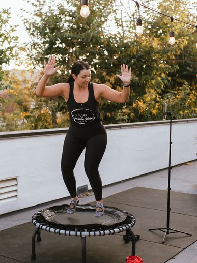 Bounce is a high intensity cardio workout focusing on core stabilization and fun interval training on a Jump Sport mini trampoline. This is a full body workout that never has a dull moment and burns calories like crazy! Get ready to sweat and bounce to upbeat music!